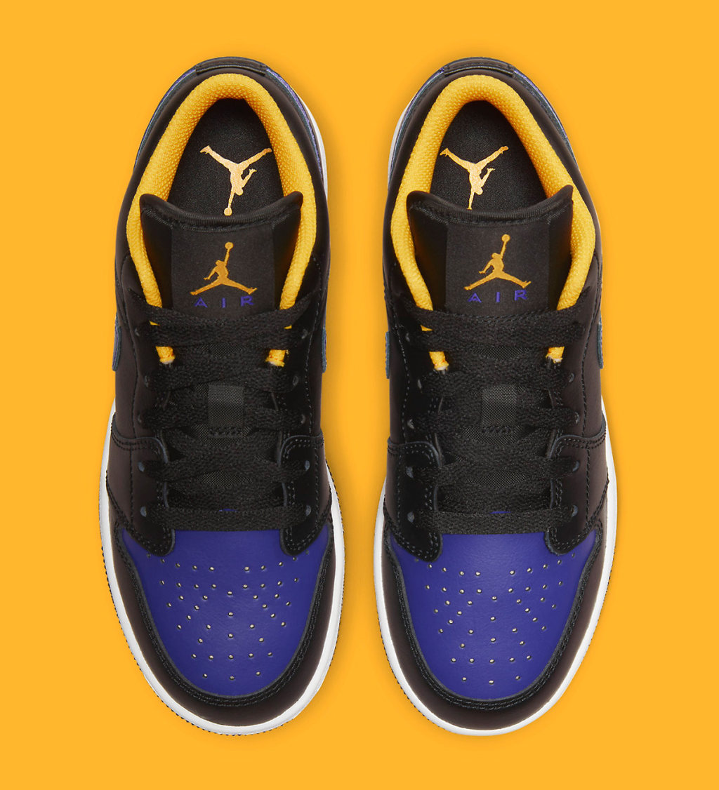 Rarely missing an opportunity to add on an extra colorway, Jordan Brand will be tacking on another complimentary Low to Mid, as this Air Jordan 1 Low “Lakers” completes the one-two punch