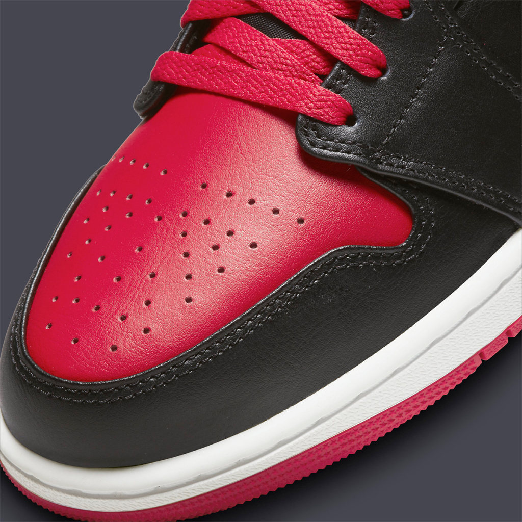 Jordan brand will return to its bread and butter colorway for its next interpretation of the Air Jordan 1 Mid returning to black and red renders — this time arriving in an alternate “Bred Toe” blocking.