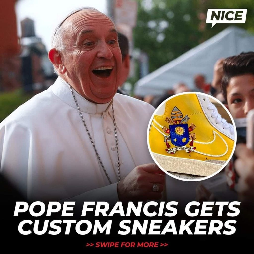 + Follow Ian Carlos Capinpuyan date 2022-10-14 01:13:18 Pope Francis Got his Custom Kickz πππ Pope Francis Got his Custom Kickz πππ 25 0 #Sneakers Comment Please Sign in to comment