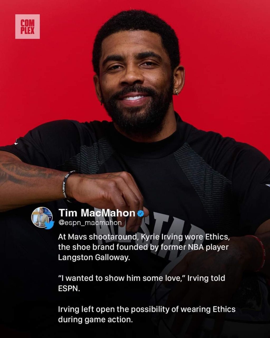 In the first glimpse of what post-Nike life could look like for KyrieIrving, he debuted Ethics LG Two at Mavericks shootaround.