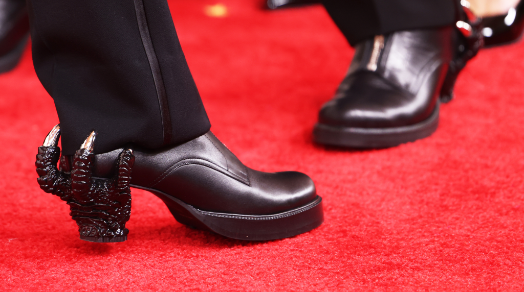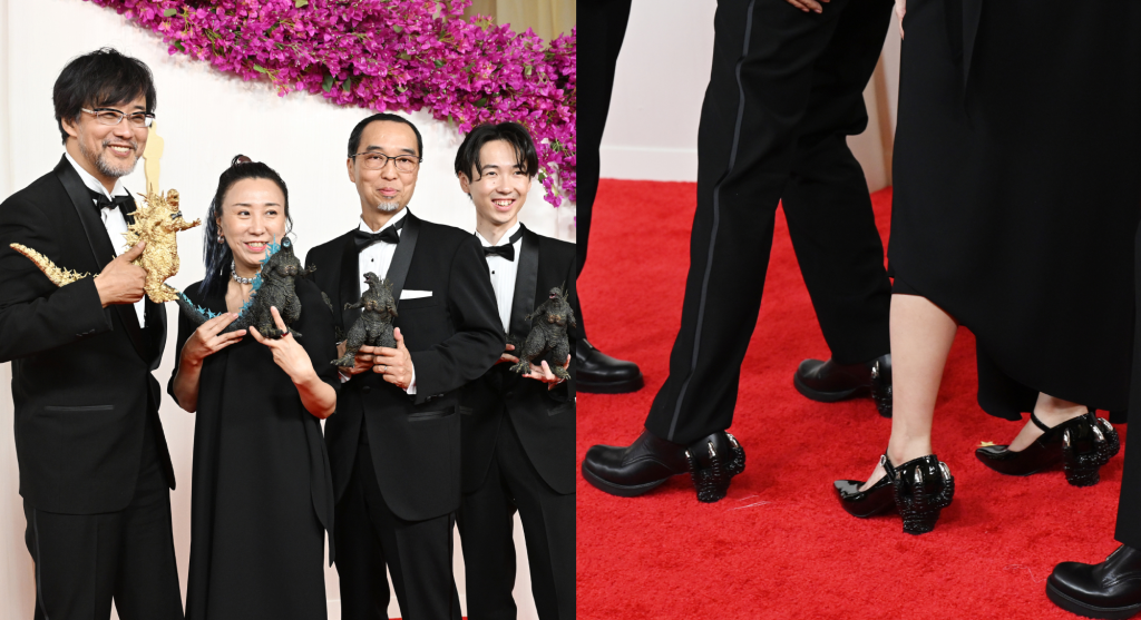 not only they went viral as the Godzilla Minus One is the first Godzilla film to win in the Academy is definitely worth hitting the 180 character tweet and a 'pinned tweet'. but they're also going all in with these clawed heel shoes that was created by Japanese designer Matsuki Ryosuke and featured a short heel that resembled Godzillas claws.