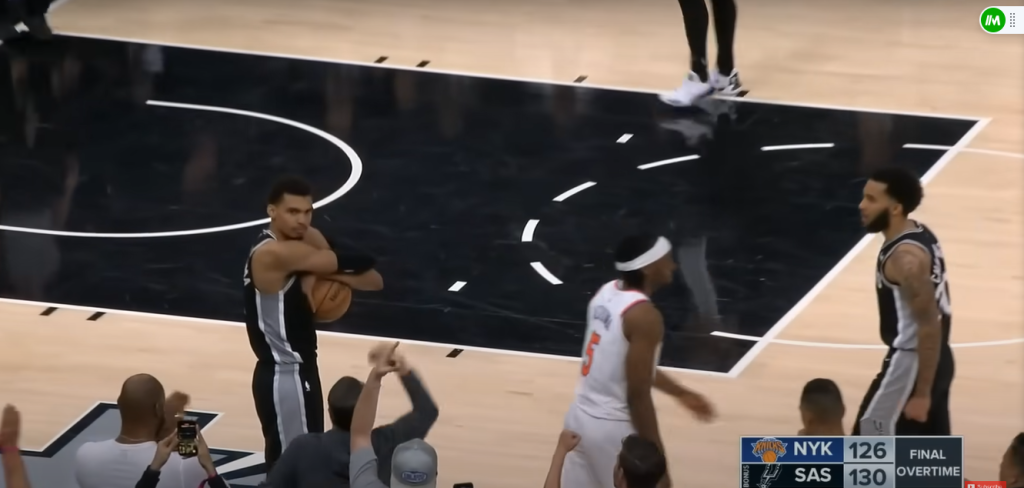 Wemby throws Jalen Brunson's 61-point game ball into the crowd 🔥 Naturally, it's hard to say whether the 20-year-old rising star intentionally stopped Brunson from taking the game ball, especially considering his team's loss. It's also intriguing that Wemby didn't grab the ball for himself despite his outstanding performance with 40 points and a win. Jalen gave his all to push the Knicks forward, scoring effortlessly. He even took on Wembanyama in matchups and managed to score against the towering opponent, who stands at either 7-foot-4 or 7-foot-5, depending on the reference.