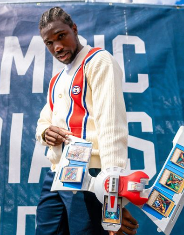 Two-time Olympic medalist and six-time world champion, always carries his Yu-Gi-Oh cards.🎴 Over the weekend, Noah Lyles matched a @gucci cardigan with a Yu-Gi-Oh! duel disk equipped with a full Exodia set and original Blue Eyes White Dragon. but wait, haven't you seen how he got all the pieces of Exodia good lordeeee it's over!!