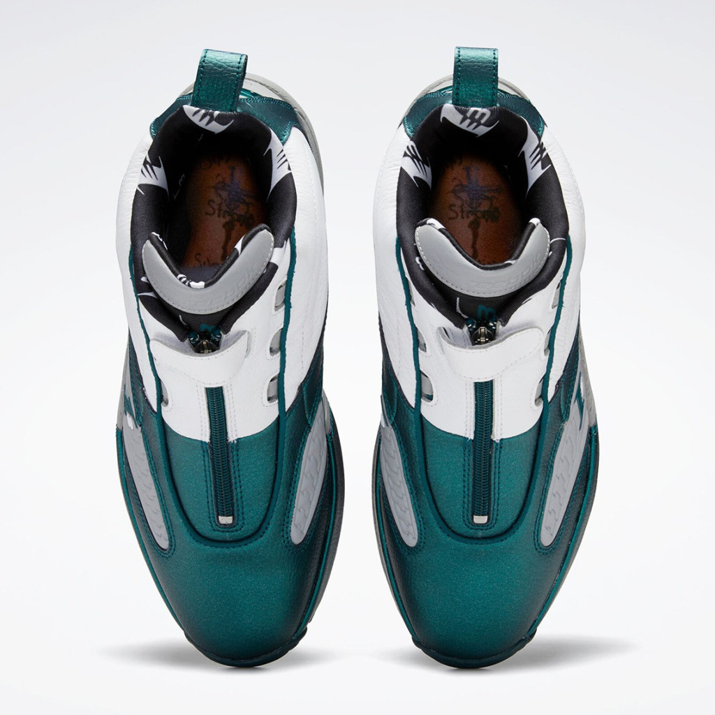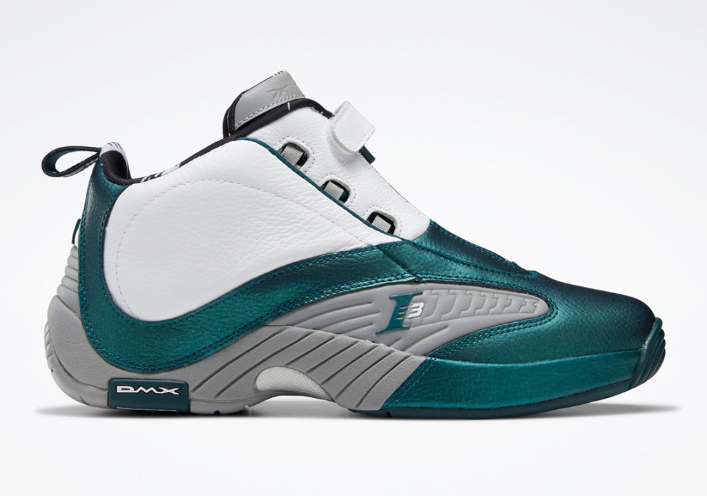 In the storybook of Allen Iverson, the chapter known as the 2001 season is unquestionably the most impactful. Already an icon on and off the court, Allen Iverson was at epicenter of sports for his inimitable style and fearless play. Reebok has recalled a number of sub-plots from the 2001 season to inspire new colorway of the Reebok Answer IV, and this Friday, the brand focuses on an influential “tunnel walk” moment that set the foundation for today’s fashion-crazed NBA today. During the 2001 NBA Finals, Iverson showed up to a game clad in a custom Philadelphia Eagles uniform with his name and jersey number and a du-rag covered in his Reebok Iverson logo. The same emerald green is applie to the upper off this Answer IV release, with the same logo pattern adorning the interior sockliner. The insoles also feature AI’s tattoo-covered arms. The Reebok Answer IV “Tunnel” is officially releasing on May 27th for $150 on Reebok.com and select retailers; see the store list ahead and stay tuned for the launch.