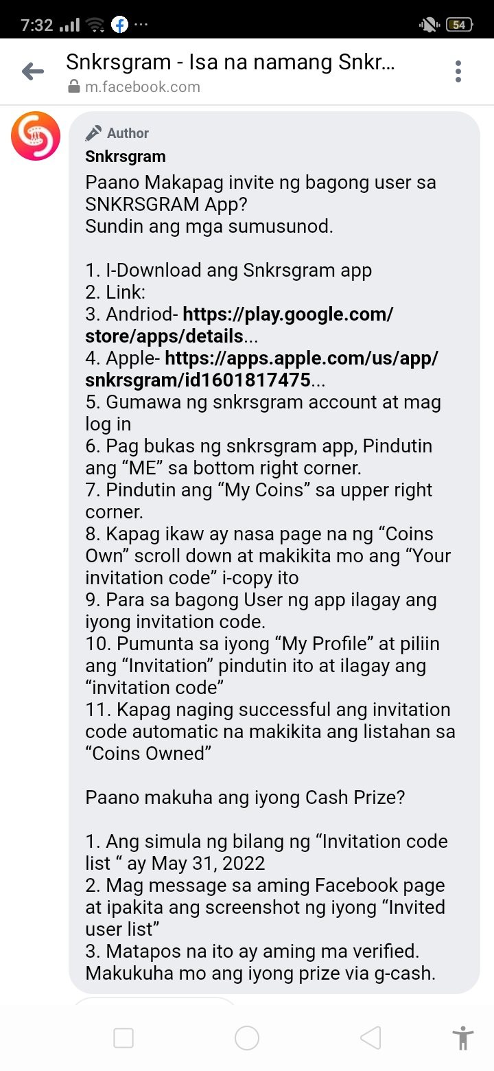 — download the app (snkrsgram) pwede sa playstore or app store. — log in thru facebook or sms. — click “me” then “invitation” tapos pakilagay sa invitation code “STY8AS2D” then click “ok” para may free coins ka na agad. — you can invite 30 or more para maka pay-out, 500 minimum pay-out kaya mag invite ka na din.