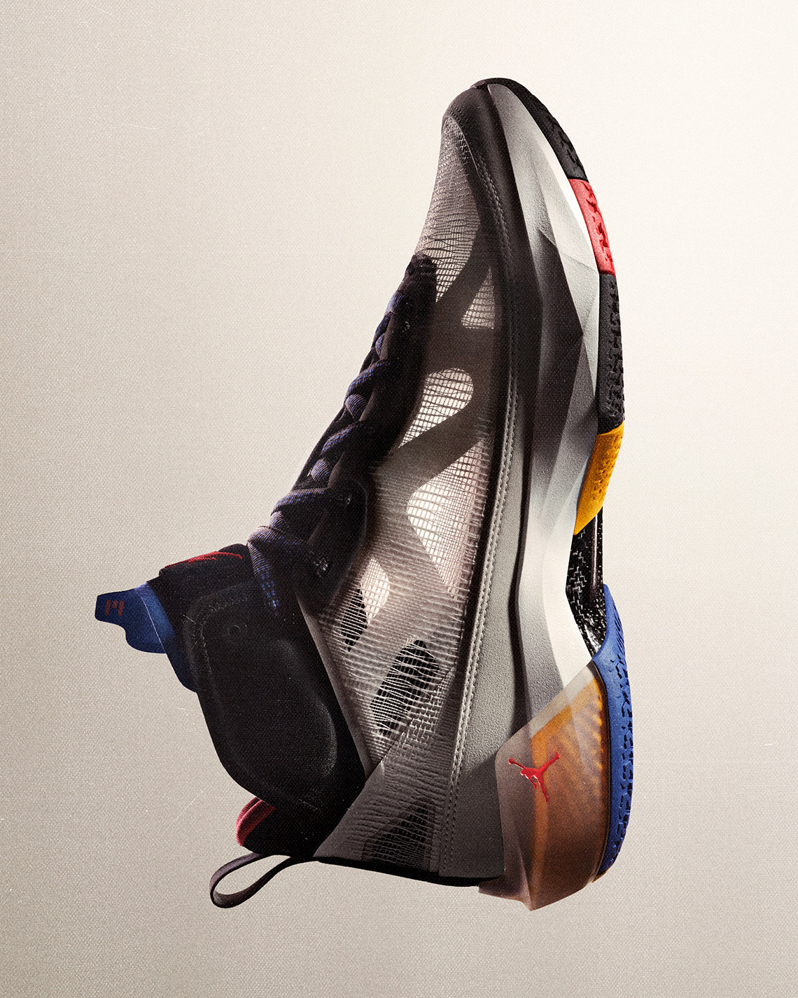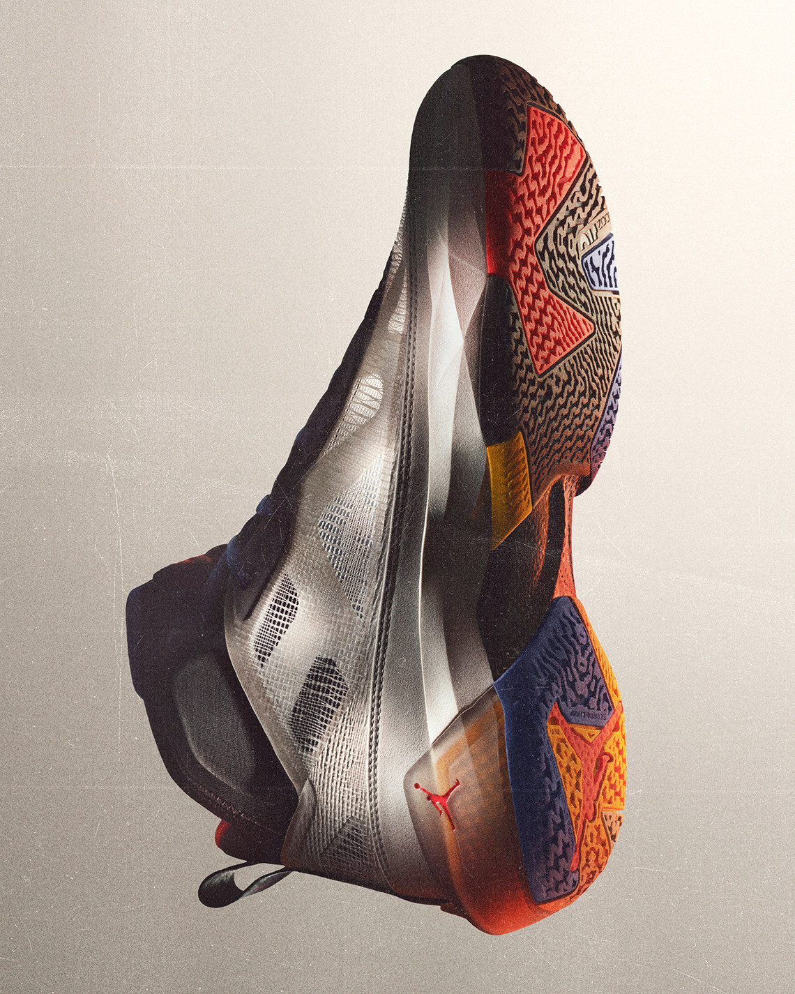 The 37th iteration of Air Jordan is upon us, and today Jordan Brand has officially revealed what’s new and what’s familiar in the latest chapter of the most storied legacy in footwear history. Off the bat, you can recognize the influence of the Air Jordan 7, the model thirty issues prior, on the outsole traction pattern as well as the pattern of the exterior shell, But the Jordan 37 is packed with innovative new tech for today’s ever-evolving basketball player, modeled after the likes of Jayson Tatum, Luka Dončić, and more. Primarily, the Air Jordan 37 design is centered around the Nike Sports Research Lab’s study of three stages of jumping: Crash, Load, and Launch. For Crash, the heel features a TPU mold encasing Formula 23 foam, the flagship foam from Jordan Brand designed to be lightweight and responsive. For Load, which is the transfer of motion from heel to mid-foot, is the carbon fiber shank at the midfoot. The Launch phase is handled by the full-length Zoom Air strobel which covers the entire foot-bed with no extraneous material above or below.