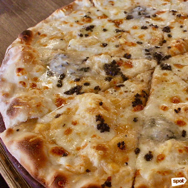 This is the first contender on the list that kind of throws a bit of a wrench in the rubric, but hey, variety is the spice of life. Said wrench is a heavy sprinkling of truffle—contrary to what you might think, it doesn’t make the pizza unbearably rich (or pretentious). Instead, there’s enough of it to add a kind of aromatic earthiness that’s just begging you to add some chili oil to it. This has to be one of the best examples of texture balance, being crispy at the edges but turning gradually softer and creamier towards the middle.